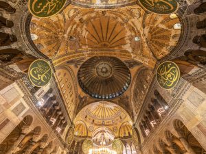 Aya Sophia Mosque in Istanbul, Turkey circa 2010 https://upload.wikimedia.org/wikipedia/commons/0/0b/Aya_Sophia_%287144824757%29.jpgInterior of the dome of the Hagia Sophia https://upload.wikimedia.org/wikipedia/commons/5/52/Istanbul_asv2021-10_img22_Hagia_Sophia.jpg